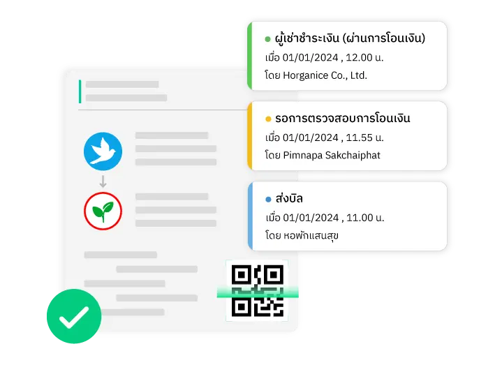 ผู้เช่าสามารถส่งสลิปการโอนเงินเข้ามาในระบบได้ทันที จากนั้น ระบบจะตรวจสอบข้อมูลบนสลิปแบบอัตโนมัติ ไม่ว่าจะเป็นยอดเงิน เวลาการโอน หรือข้อมูลจาก QR Code ของทุกธนาคาร ช่วยให้เจ้าของหอพักและพนักงานตรวจสอบรายการชำระได้รวดเร็วขึ้นโดยไม่ต้องไล่ดูทีละใบเหมือนเดิม