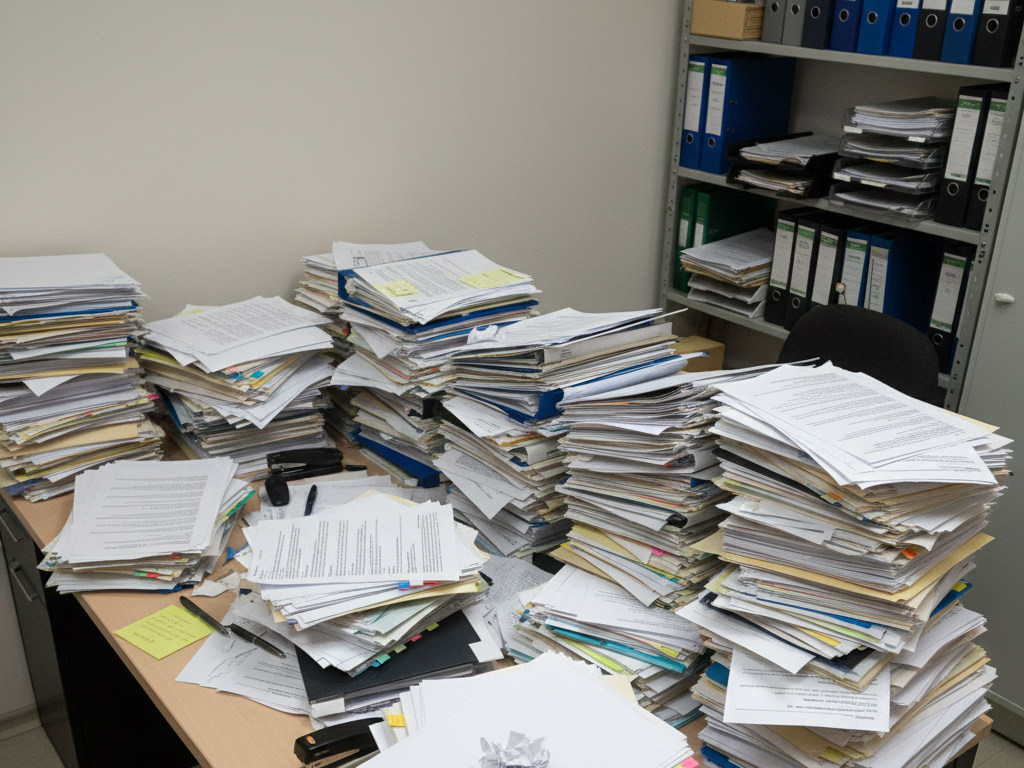 1. เอกสารเยอะ กระดาษเต็มโต๊ะ ตรวจย้อนหลังยาก